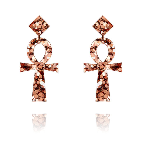 Handmade from luxe Perspex glitter, with sterling silver for pierced ears, the Ankh earrings are eye-catching, feather light and perfect to wear from day to night.