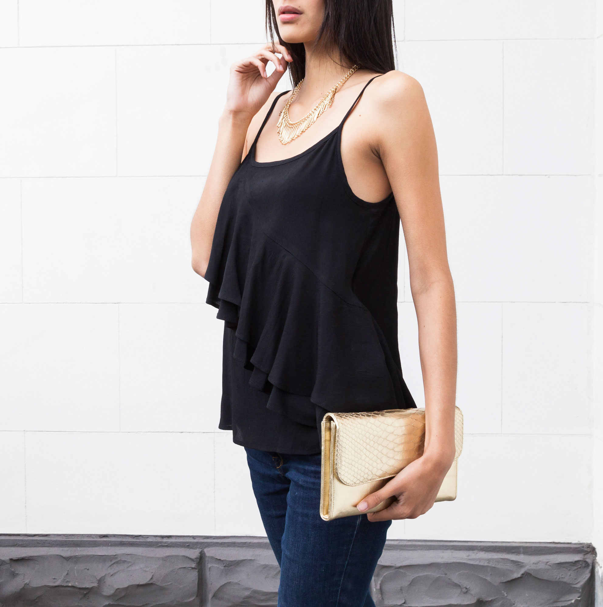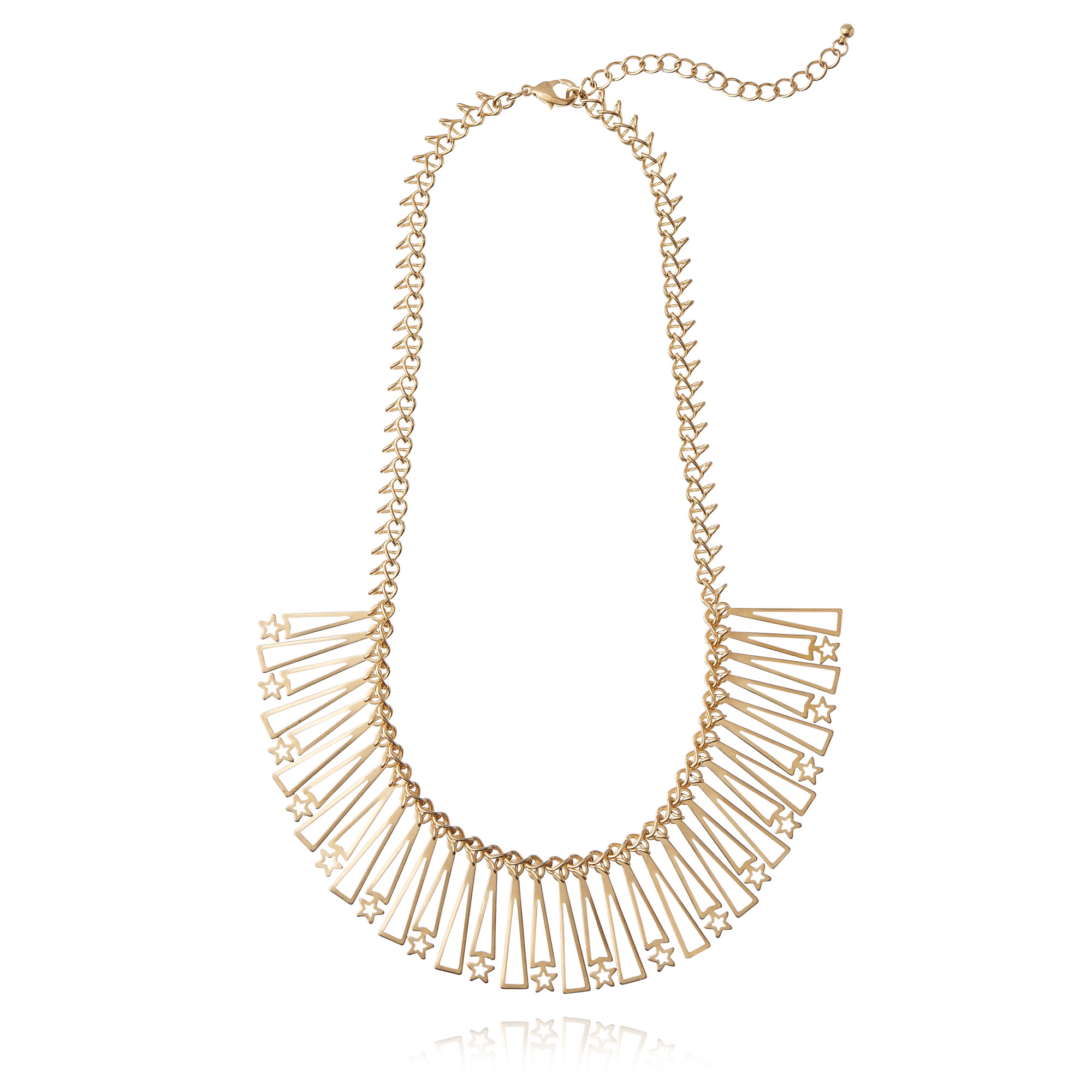 The Dancing Star Necklace has 14k pale gold plating. The necklace features a beautiful star detail and has a lobster clasp with adjustable chain length. It looks great with almost everything.